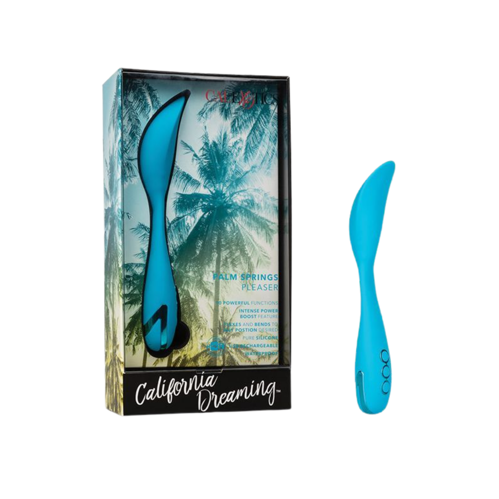 Indulge in waves of pleasure with the Palm Springs Pleaser from California Dreaming™. This flexible and compact massager is designed to bend to your will—literally. Use it as a discreet panty teaser or a sensual external vibe that moves with your body. With 10 indulgent vibration patterns, a powerful Power Boost mode, and a memory chip that resumes your last-used function, this mini vibe packs serious pleasure into a travel-friendly design. Its waterproof body and 100% play area make it perfect for in or out of the water, and it recharges in just 2.5 hours to keep you ready for spontaneous adventures.