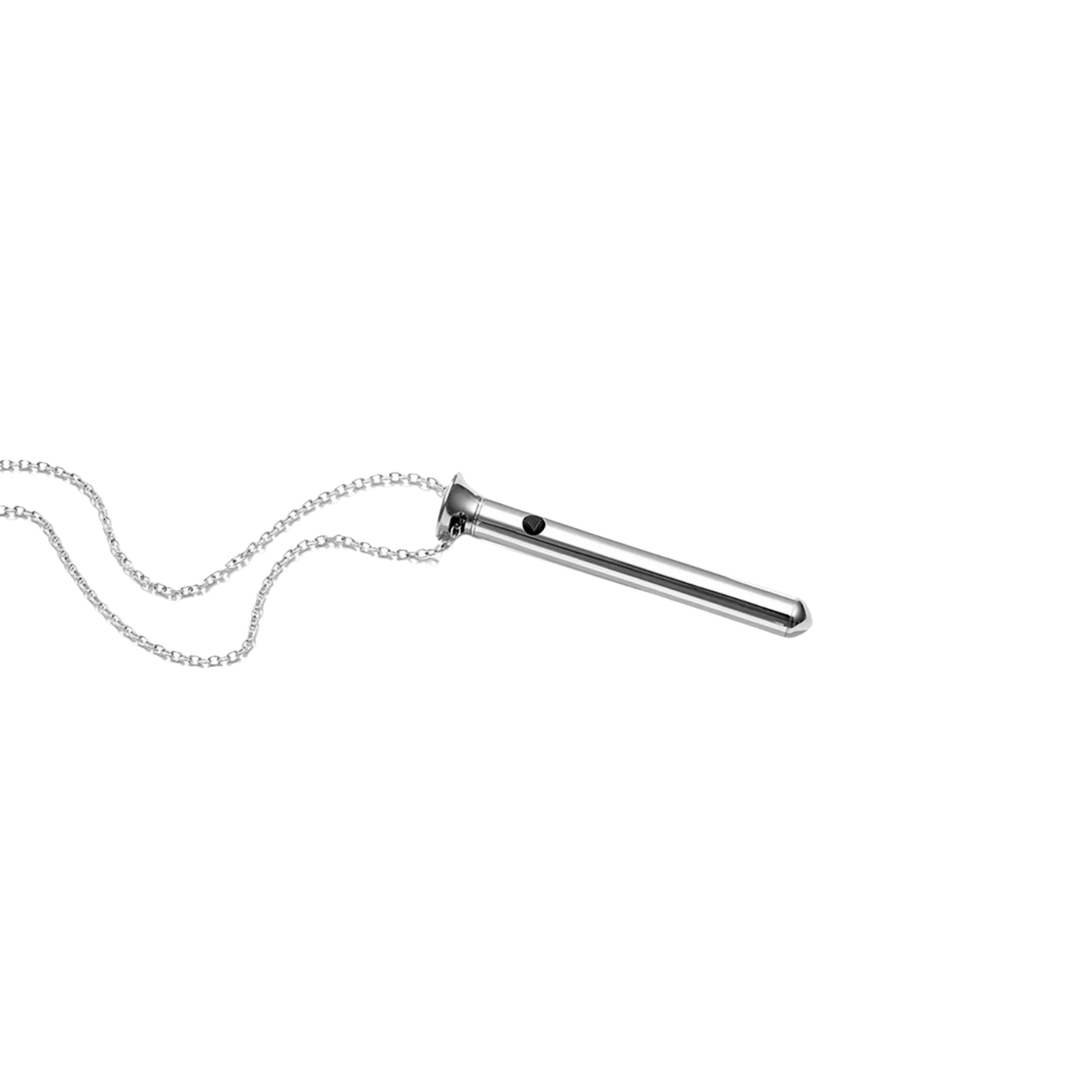 A smaller, more intimate take on the iconic Vesper, this chic statement necklace doubles as a discreet vibrator designed for style and pleasure. Crafted from stainless steel with a body-safe silicone button, it features four speeds, a wave mode, and a powerful TURBO boost. Whisper-quiet, waterproof, USB-C rechargeable, and designed to gently warm during use, it’s luxury you can wear anywhere.