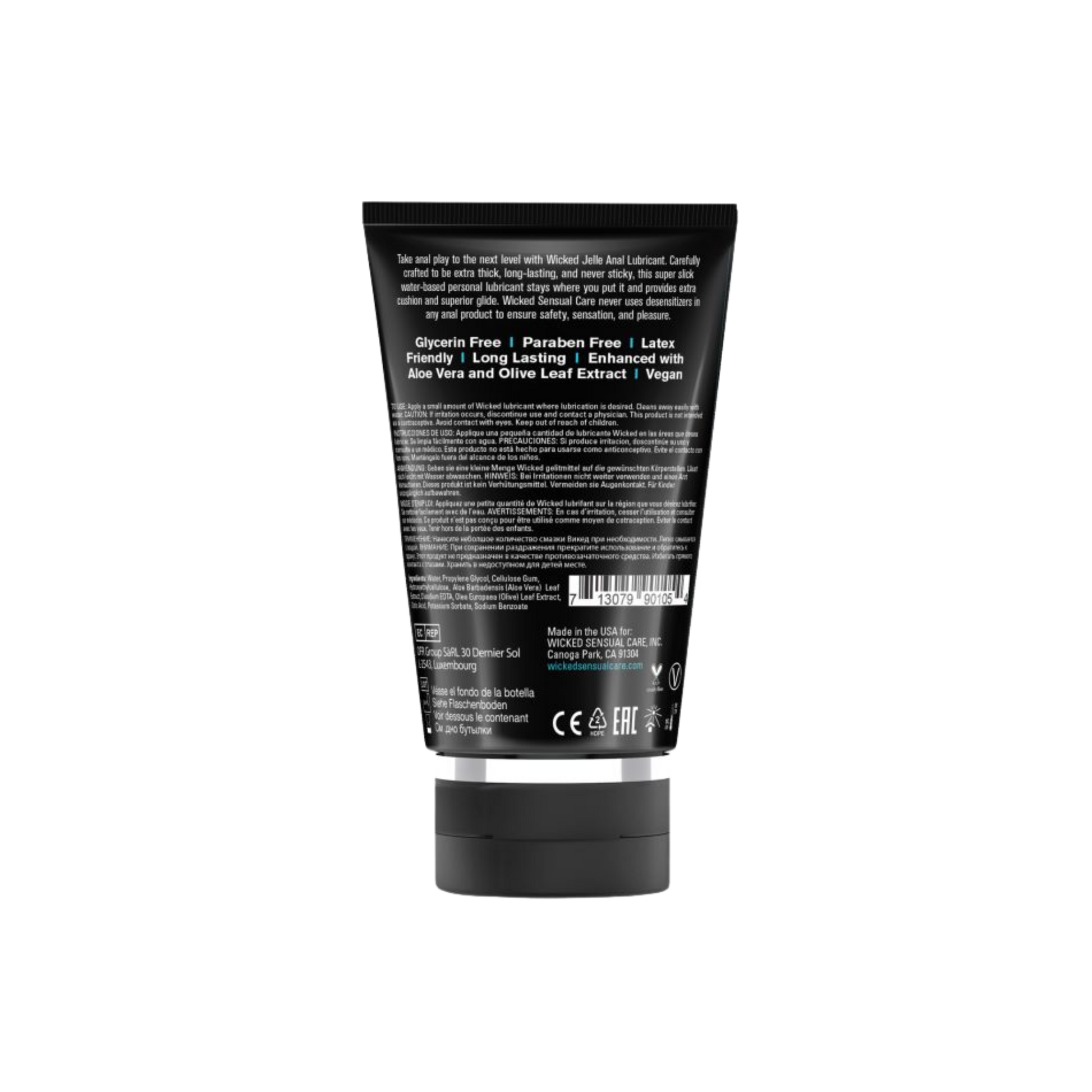 Carefully crafted and incredibly luxurious, take backdoor play to the next level with our Wicked Jelle Anal Lubricant. Highly concentrated to be extra thick, long-lasting, and never sticky, this super slick, water-based personal lubricant stays where you put it and provides extra cushion and superior glide. Wicked Sensual Care never uses de-sensitizers in any backdoor product to ensure safety, sensation, and pleasure.
